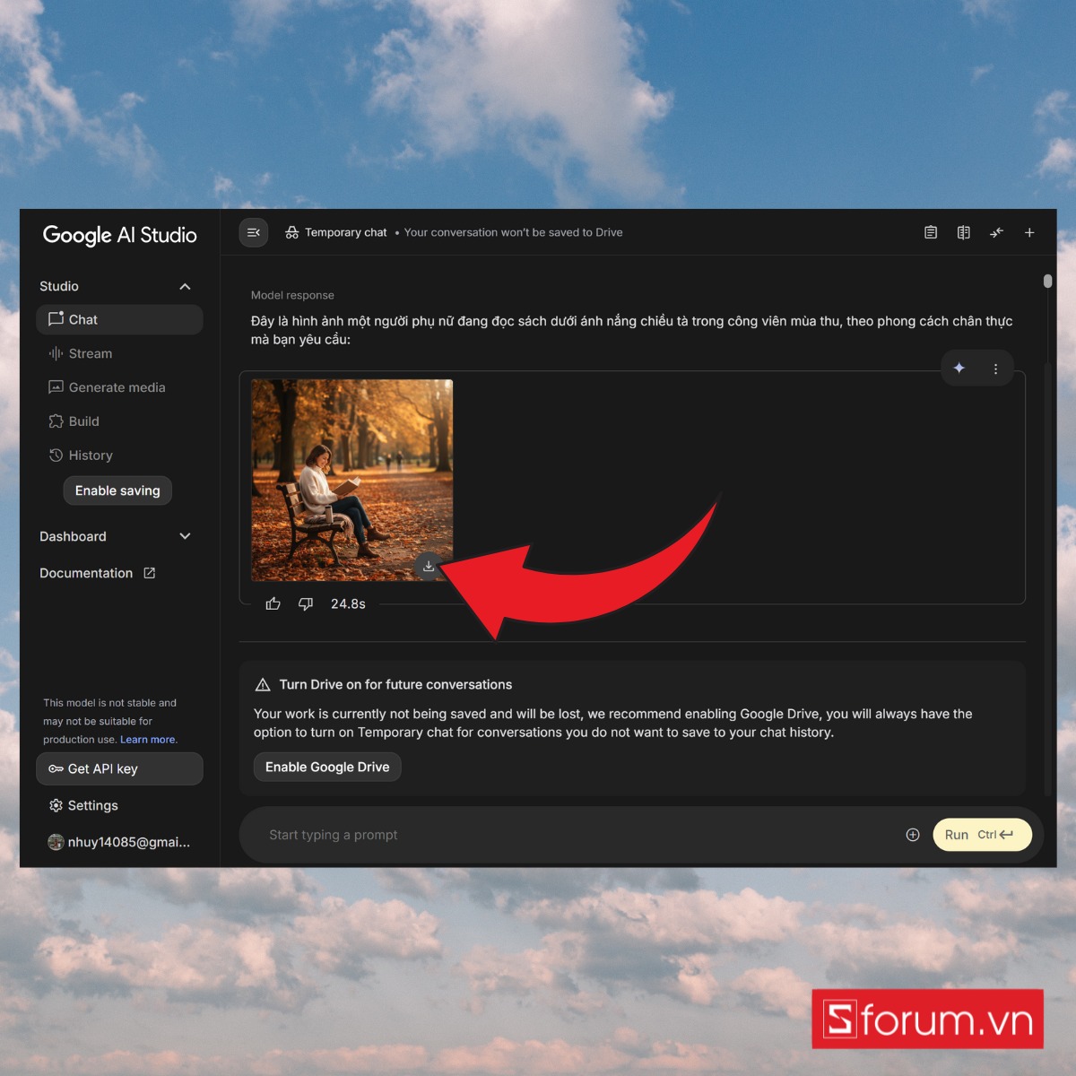 Chờ hệ thống kết hợp và tạo ra ảnh mới. Sau khi hoàn tất, bạn có thể tải ảnh về hoặc chỉnh sửa thêm các chi tiết nhỏ.